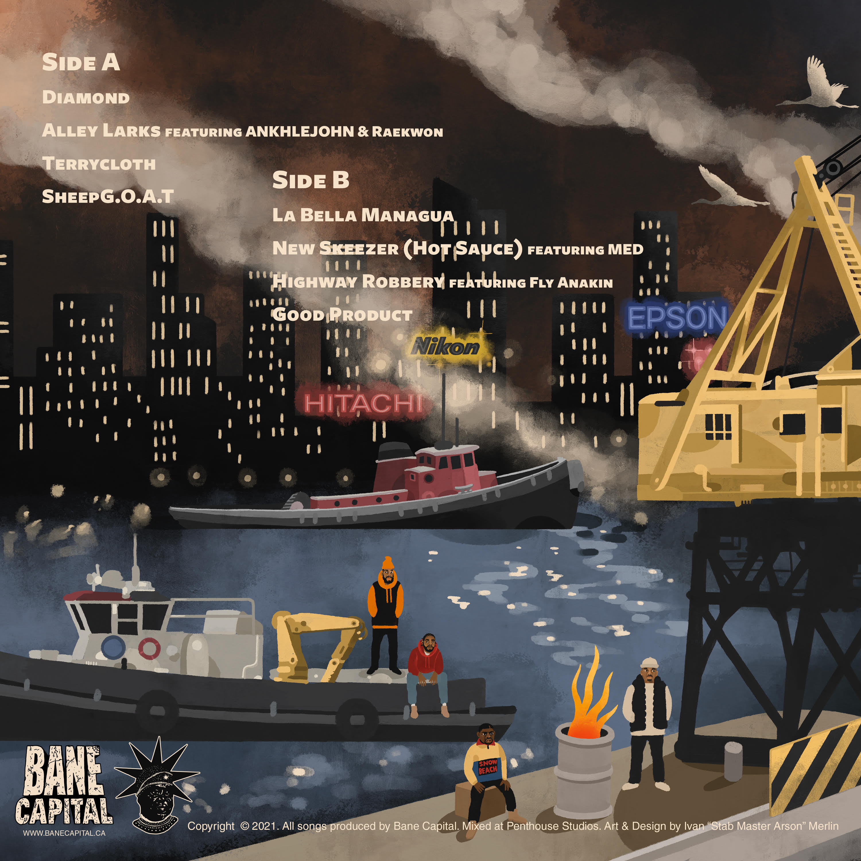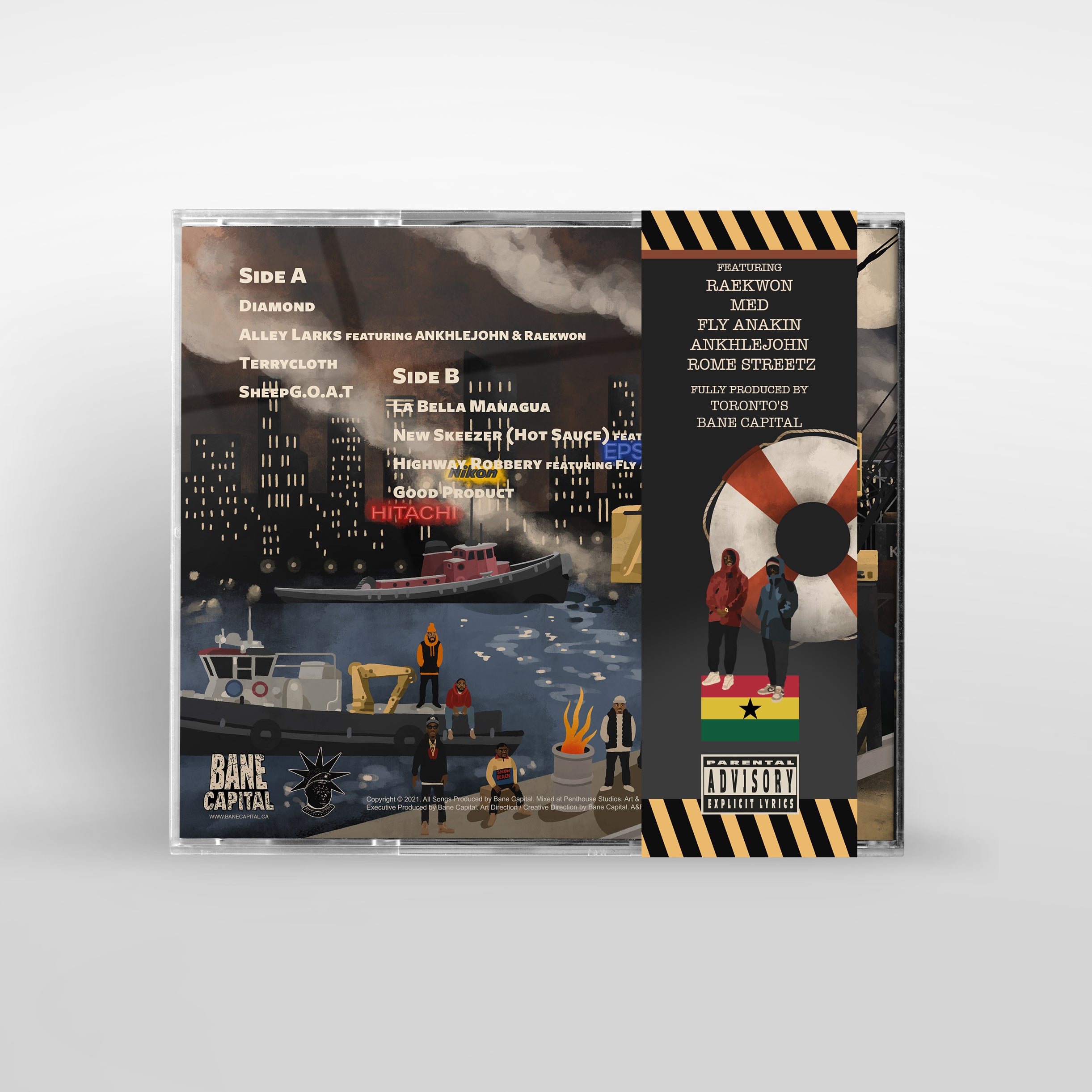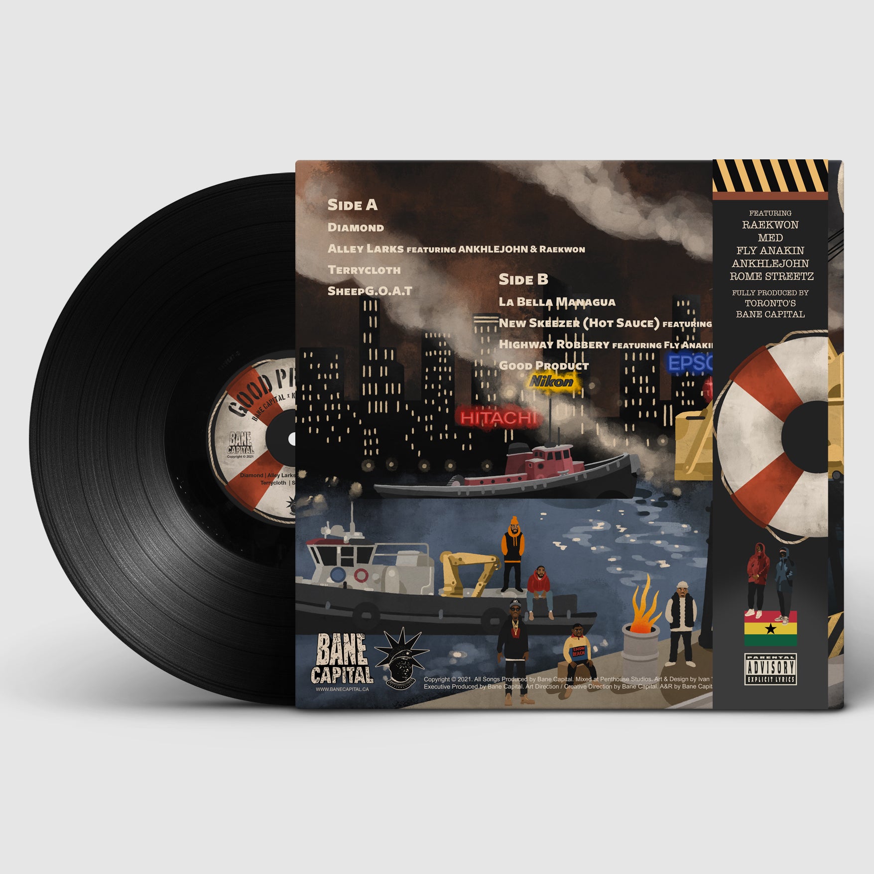 Koncept Jack$on’s “Good Product” sees the rapper link with fabled Toronto production group Bane Capital for his most ambitious project yet. The album’s 8 songs pack incredibly dense and vivid lyricism against a range of production that showcases a display of advanced sampling techniques. Bane Capital work the MPC and SP 555 to their limits to create a raw, future-oriented sound against the increasingly loop-heavy and percussion-less backdrop of modern underground hiphop.
